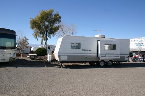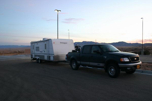 The final picture is of course my camp site in Fam Camp, on Nellis AFB. I'll be here for the next 4 months I think. The spot is a little crowded, a little baren, but I like it. It's my spot, my trailer with my truck and motorcycle parked nearby, and of course my food and beer inside. To me, that's all a win-win-win-win situation.